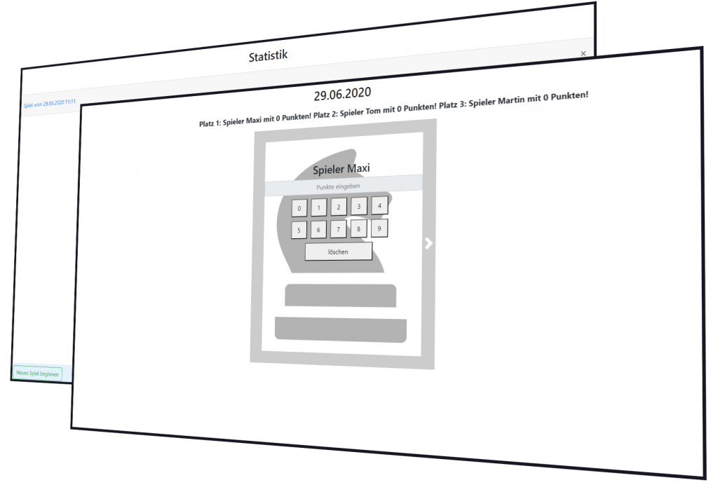 - fortlaufende Speicherung der bisherigen Spiele mit anschließender Auswertung in Form einer Statistik